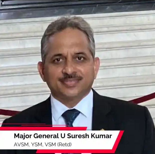 Major General U Suresh Kumar, AVSM, YSM, VSM (Retd), is a distinguished alumnus of Sainik School Bijapur, NDA, and IMA, commissioned into the Punjab Regiment in 1984 and retired in January 2022 after 38 years of service. He has held key operational commands in Manipur, J&K, and the Eastern Borders, earning multiple gallantry awards including the Ati Vishisht Seva Medal. He served as a UN Military Observer in Sierra Leone and later coordinated operations there. Academically, he holds advanced degrees in Defence and Strategic Studies and Defence Management, and has over a decade of teaching experience in prestigious institutions such as the National Defence College and IIT Kanpur. His expertise spans Strategic Thinking, National Security, Terrorism, Red Teaming, and Scenario Building, making significant contributions to strategic gaming and defence education.